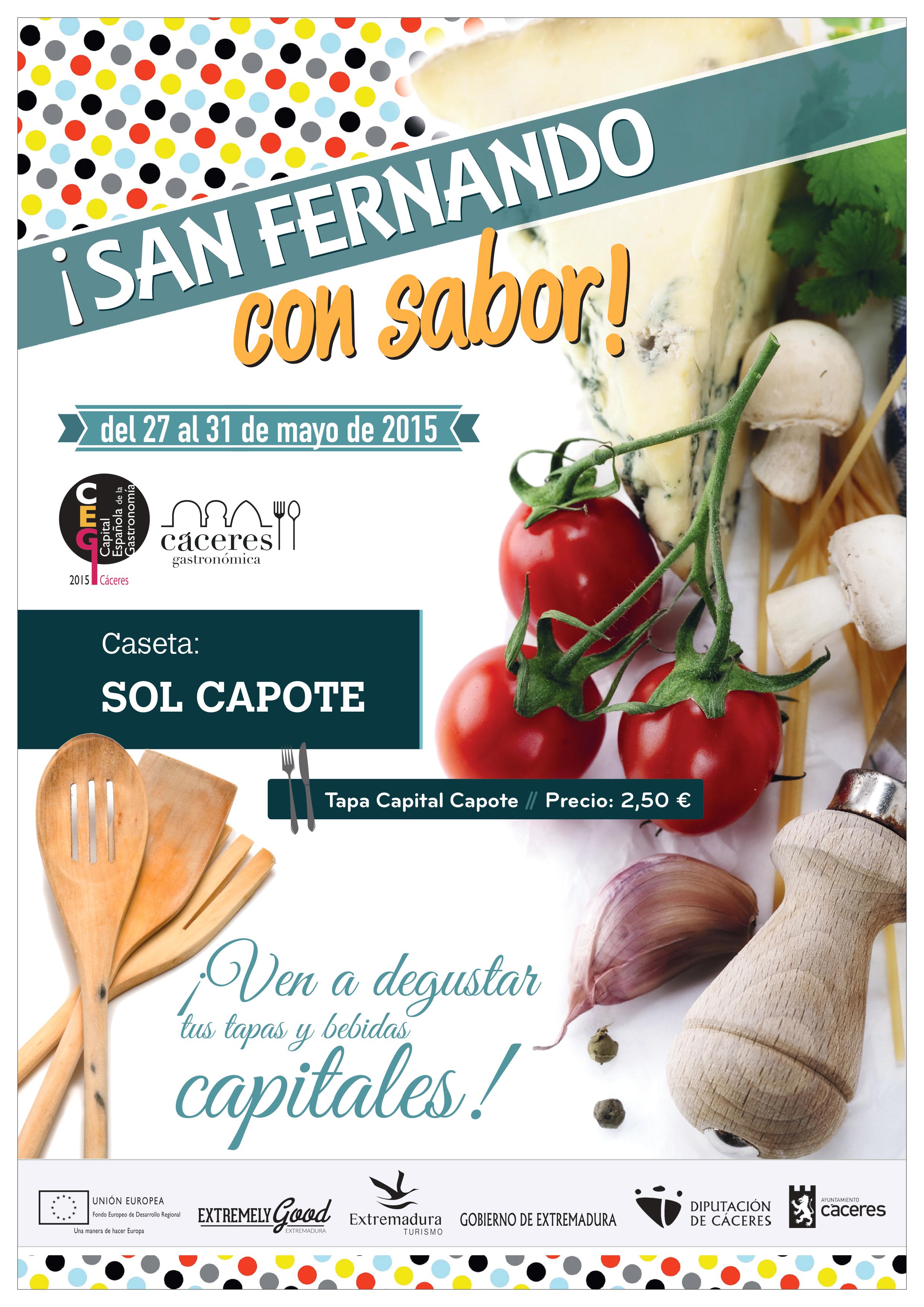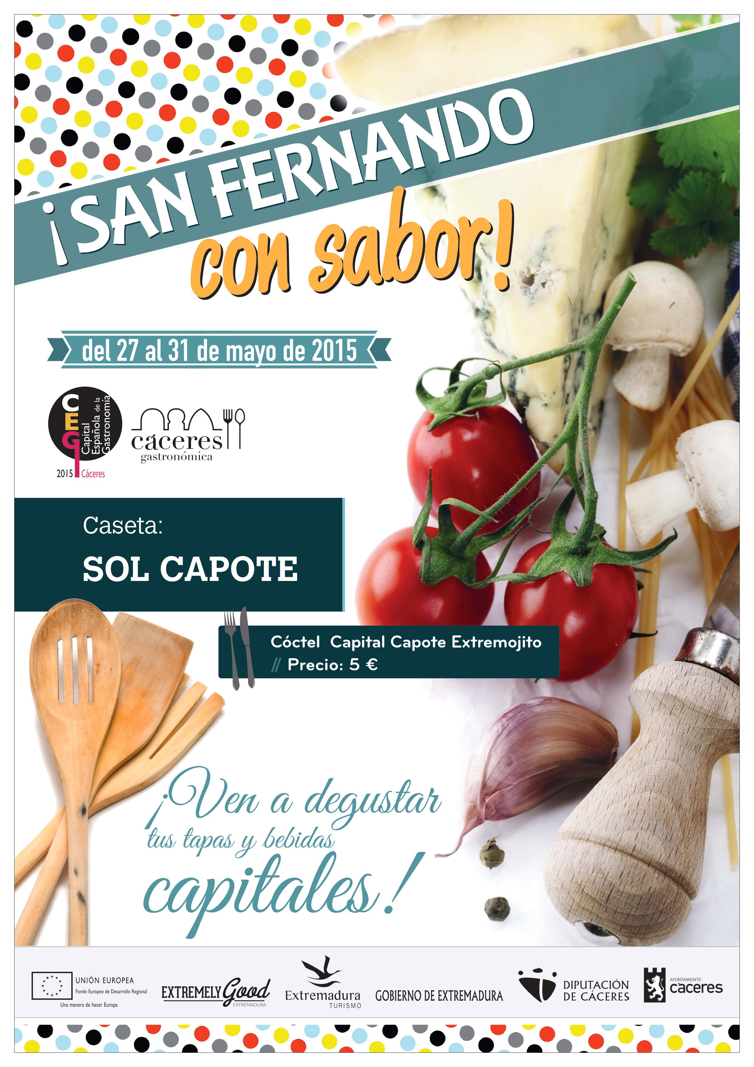 Con motivo de que Cáceres es La Capital Española de la Grastronómia 2015, ven a la Feria de San Fernando de Cáceres 2015 y descubre una nueva forma de disfrutar de nuestra gastronomía. Prueba tapas y cócteles capitales en las cuatro casetas participantes de la Feria.